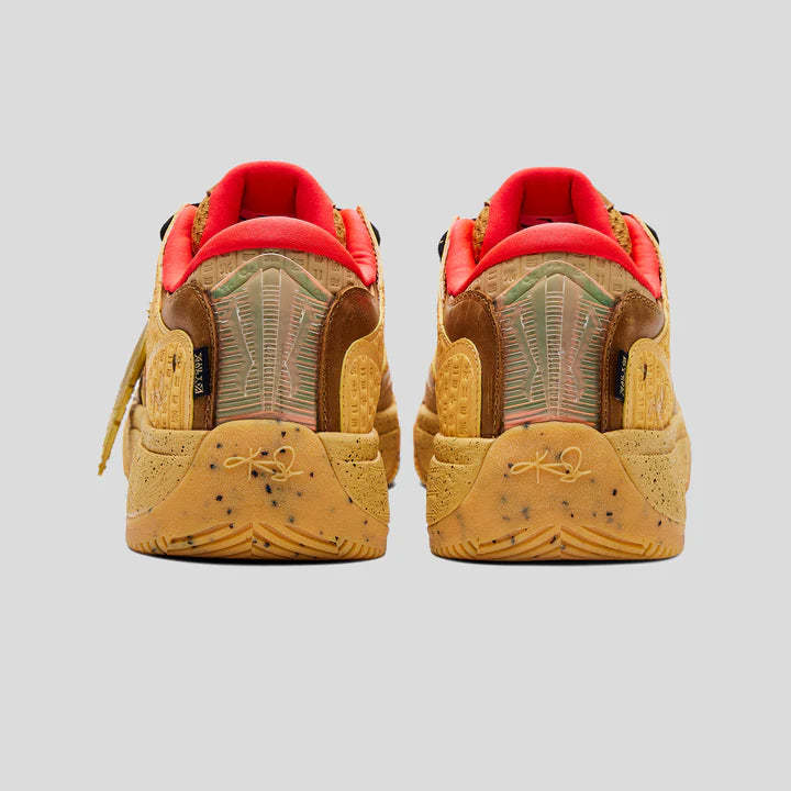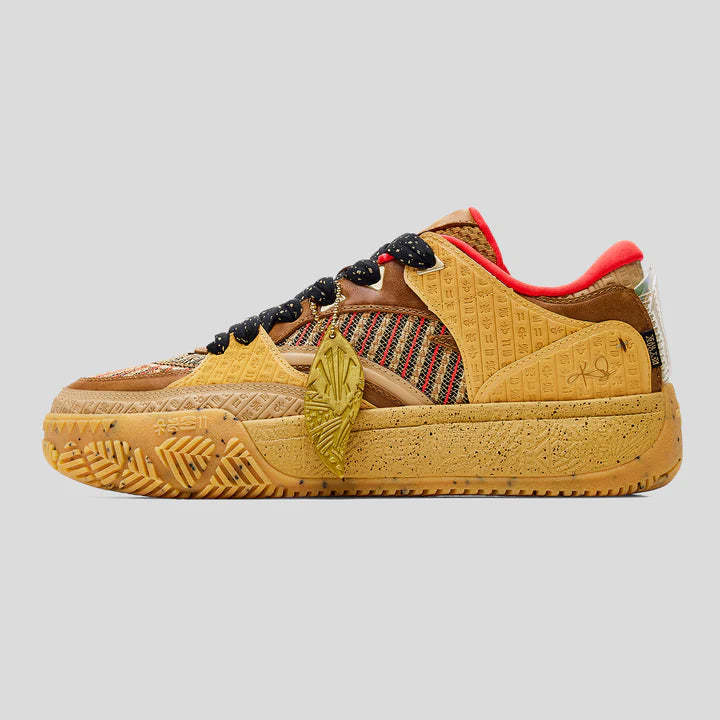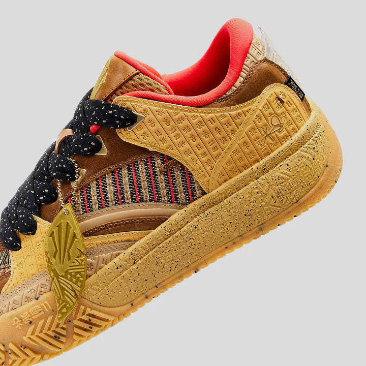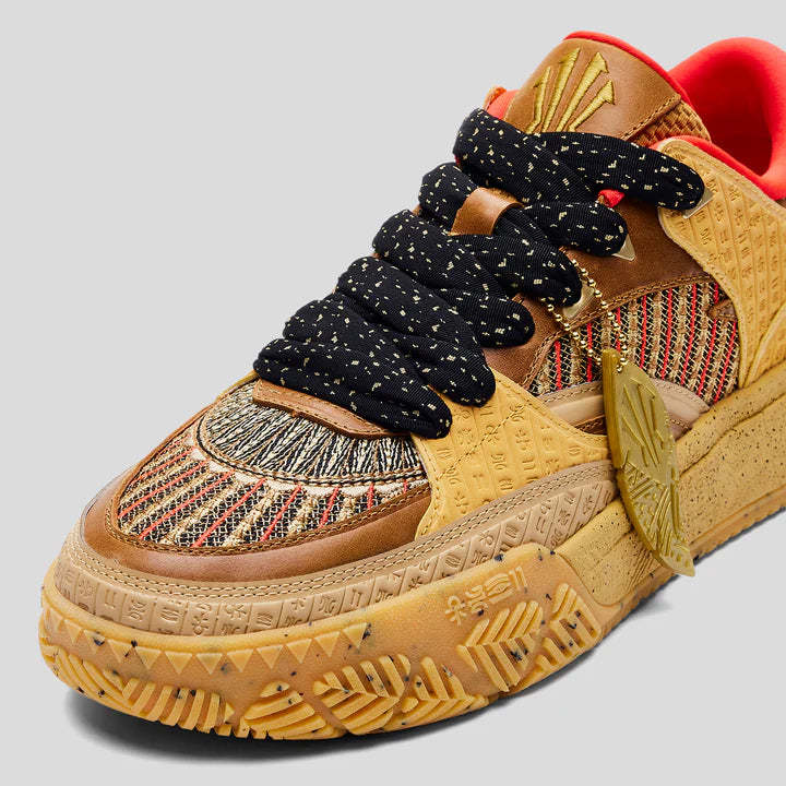 The Hélà Code fuses ANTA performance engineering with Kyrie’s skateboarding influence. Every detail bridges functionality and storytelling, from bold board-inspired laces to heritage textures.