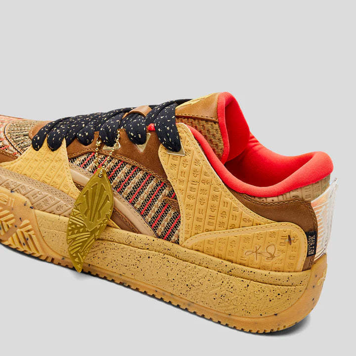 Kyrie leads with the grace of a pharaoh, rooted in love, vision, and power. The design reflects him as athlete, creator, and cultural architect.